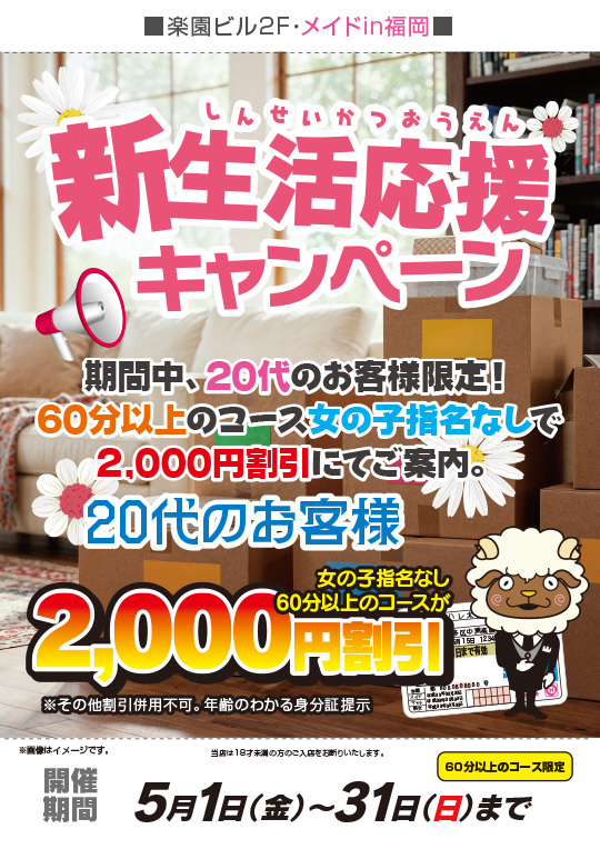 20代のお客様限定!女の子指名なしで60分コース以上が2,000円割引!